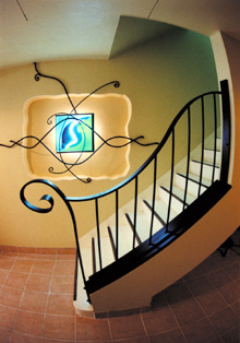 壁面を飾るアート作品にも、間接照明にもなるネオンアート。設置場所を選ばず、エントランスに印象的な表情を作り出せる。見る者の気持ちをやさしく癒してくれる、淡く、やわらかい色彩が安彦氏の作品の持ち味だ