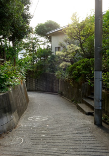 与楽寺の脇を走る、通称 "幽霊坂"。住宅地となった現在でも情緒ある閑静な街並みが残る