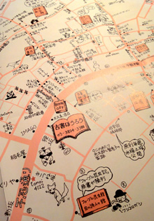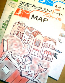 一箱古本市で、もうひとつ注目したいのは、ただ単に古本の販売に始終するのではなく、実行委員が編集している「不忍ブックストリート・マップ」を無料配布している点だ。このイラストマップは、点在する"大家さん"と呼ばれる出店予定地への道案内役を担っているだけでなく、"本と散