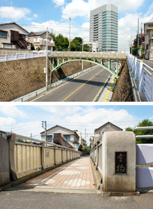 田端駅北口より南側へ続く切り通しの道は昭和8年に完成した。その際に、田端の東西をつなぐ橋としてかけられた童橋。滝野川第一小学校へ通う児童の通学路として利用されていることからか、童橋との名称がついている